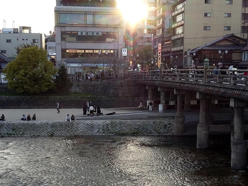 Kamogawa River is running from north to south through downtown Kyoto.